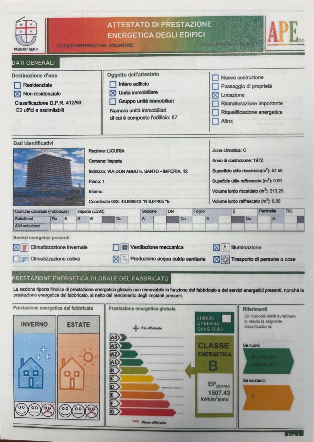 Proponiamo in locazione un elegante ufficio di 64 mq, situato al primo piano del grattacielo di Imperia, posizione centrale e di grande visibilità.